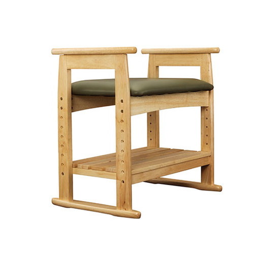 和風なデザインの木製スツール。脚の底は畳の上でもへこみにくい畳ずりタイプになっており、座面は30mmごとに高さ調節が可能。高さを自分好みに合わせられ肘付きなので立ちあがりや座る動作がしやすくなっています。年配の方もご利用頂きやすいです。