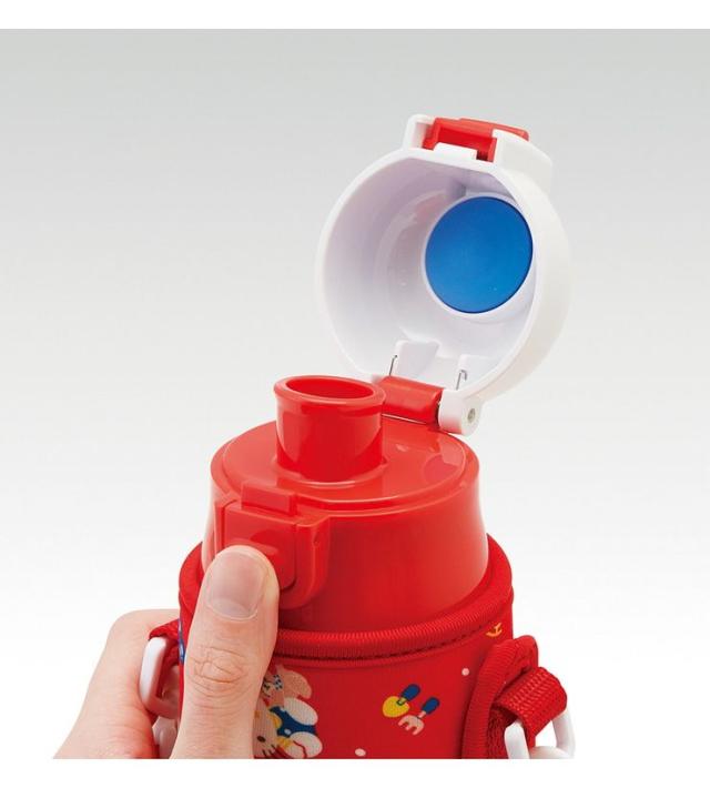 超軽量コンパクトタイプ。ワンプッシュオープンで、飲みたい時にすぐ飲めます。誤作動でキャップの開閉を防ぐロック機能。ウエット生地素材のカバーつき。カバーにはベルトがついているので持ち運びも便利で、ハンドホルダー付きだから飲む時にも持ちやすい。