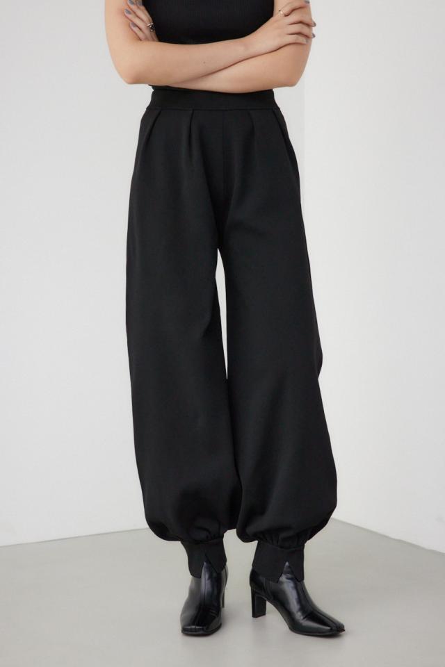 ハイツイストのポリエステル糸を使用した、程よいボリューム感がポイントのアラジンシルエットのニットパンツです。