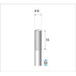 ●刃径(mm):6●刃長(mm):16●軸径(mm):6●全長(mm):50●最高使用回転数(rpm):30000●形状:円筒(シングルカット)●タイプ:-