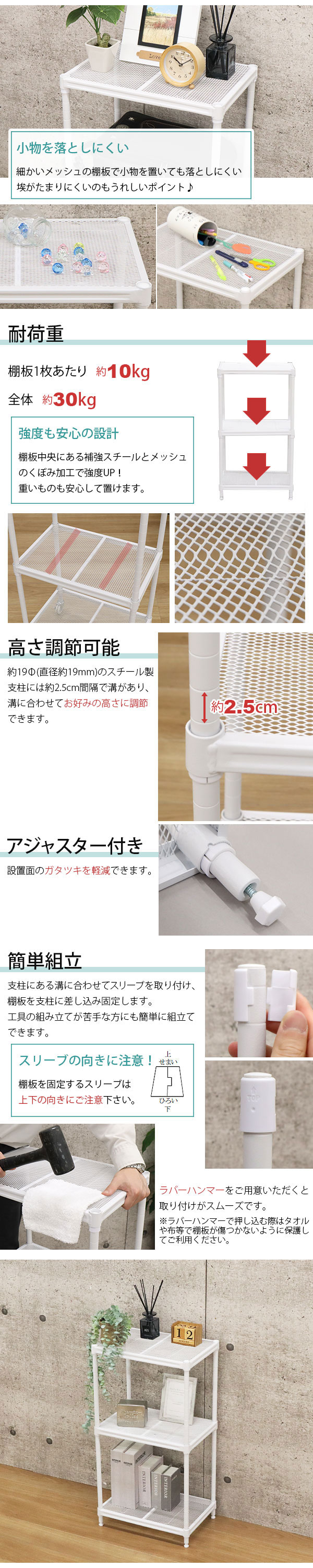 耐荷重(約):1枚あたり 10kg、全体30kg