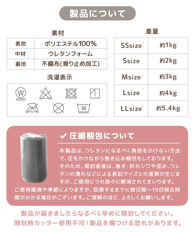 | 素材 | 表地:ポリエステル 中材:ウレタンフォーム 裏地:不織布(滑り止め加工) |