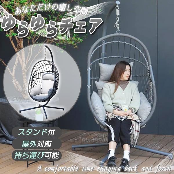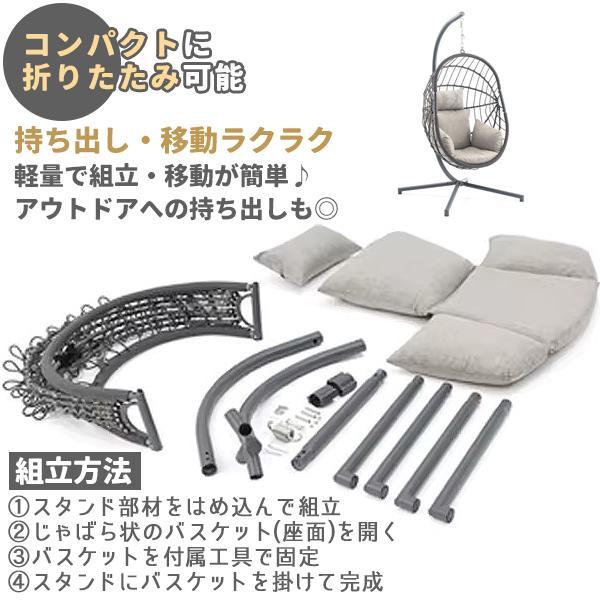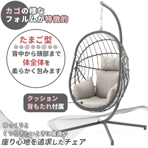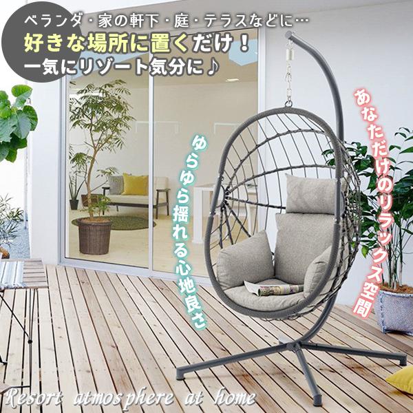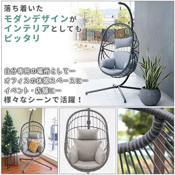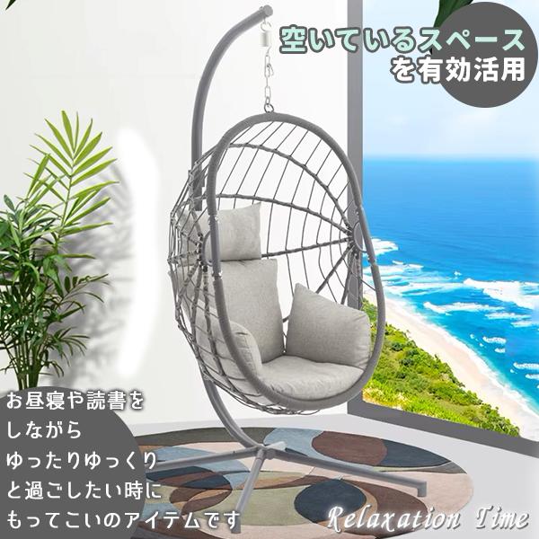 ハンギングチェア ガーデンファニチャーハンモックチェア 1人掛け クッション付 ピーコック ハンギングチェア グレー