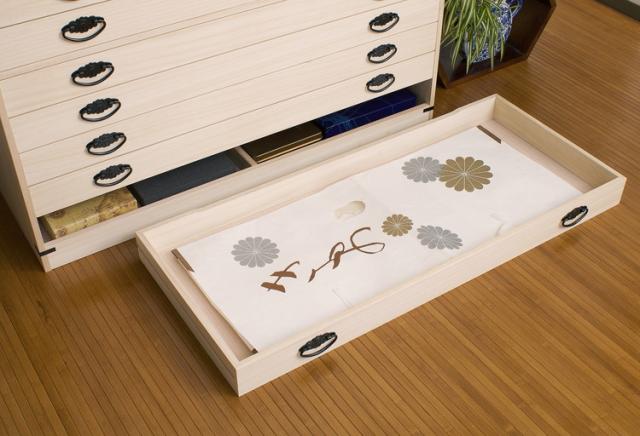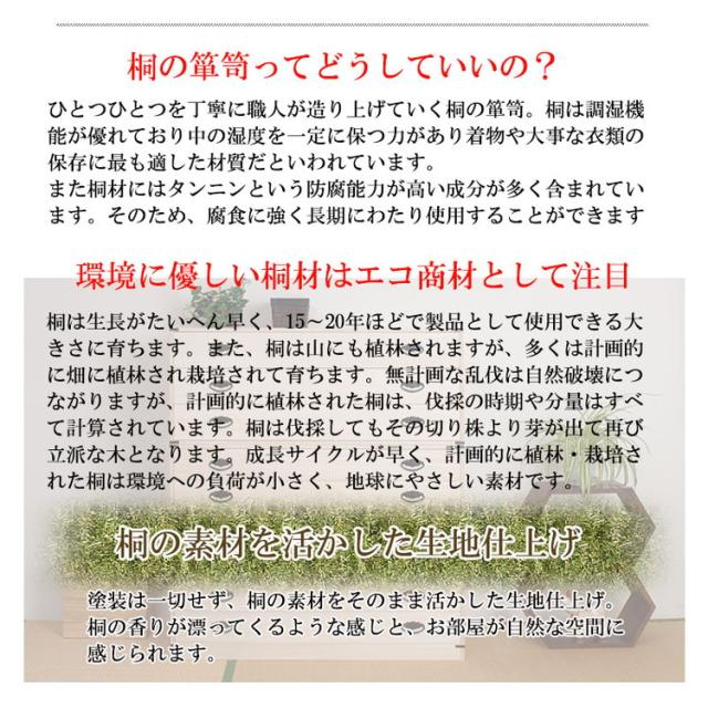 ■商品について/ たとう紙を折らずに収納できる幅広の桐チェスト 桐材は内部を一定の湿度に保とうとする働きがあります