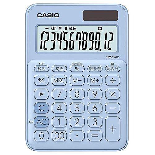 カシオ 電卓 12桁 (ペールブルー)CASIO カラフル電卓 ミニジャストタイプ MW-C20C-LB