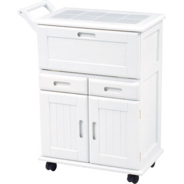 キッチンワゴン キャスター付き 木製 タイル張り天板 MW-3709 白(ホワイト) (代引不可)