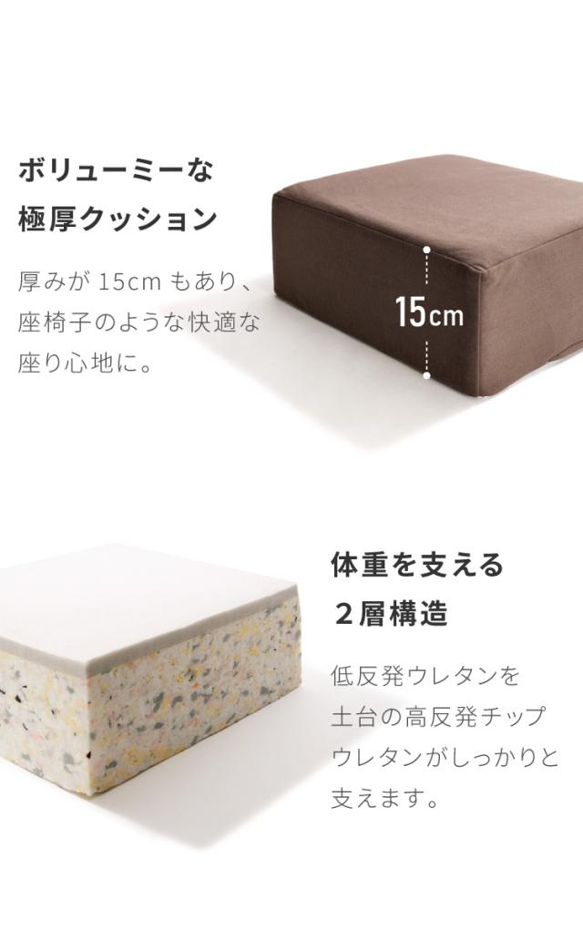 低反発クッション 正方形 厚さ15cm 四角 極厚 ふわふわ 肌触り 布地 洗える ウォッシャブル 北欧 かわいい ウレタン シンプル 低反発 リビング ダイニング クッション スクエアクッション フロアクッション 座布団 座椅子【送料無料】