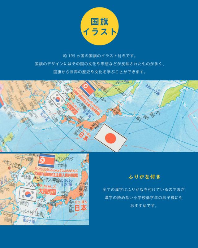 よみがな付き行政タイプ地球儀 | 国旗イラスト地球儀 20径 | 国旗イラスト地球儀 30径 | 小学生の地球儀 |