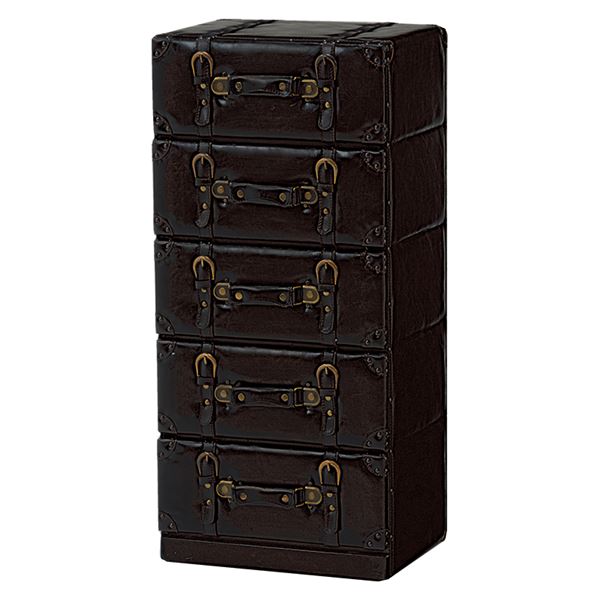 チェスト 5段 合成皮革 トランク型 チェスターシリーズ MCH-6005 ダークブラウン 【完成品】(代引不可)