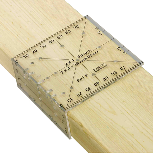 定規のサイズが2×4材の幅と厚みに合わせてあるので、2×4材に最適です。