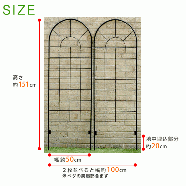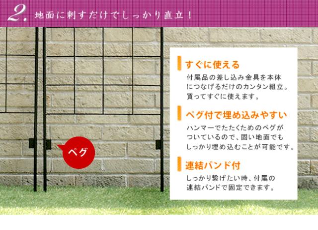 | ■備考 | ・結束バンドで左右を繋げることができます。 ・基本的に埋め込み部分をしっかり埋め込んで頂ければ自立しますが、柔らかすぎる地面などでは倒れる恐れがありますので、お客様自身で固定いただくか、ご使用をお避けください。 |