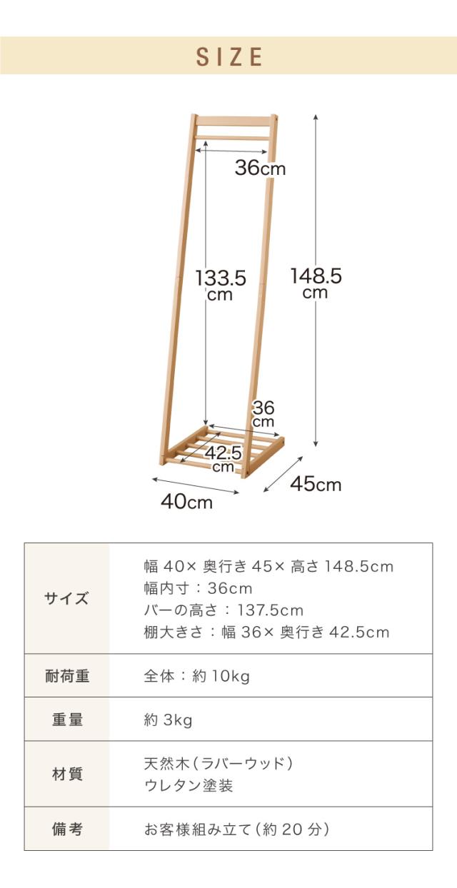 ・どこのお部屋にも馴染むシンプルな木製ハンガーラックです。
