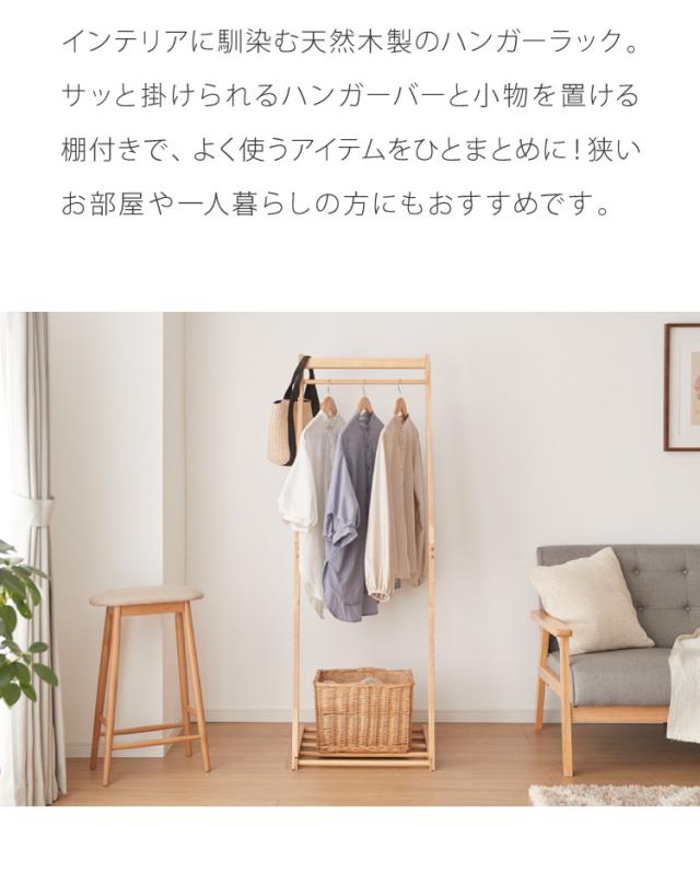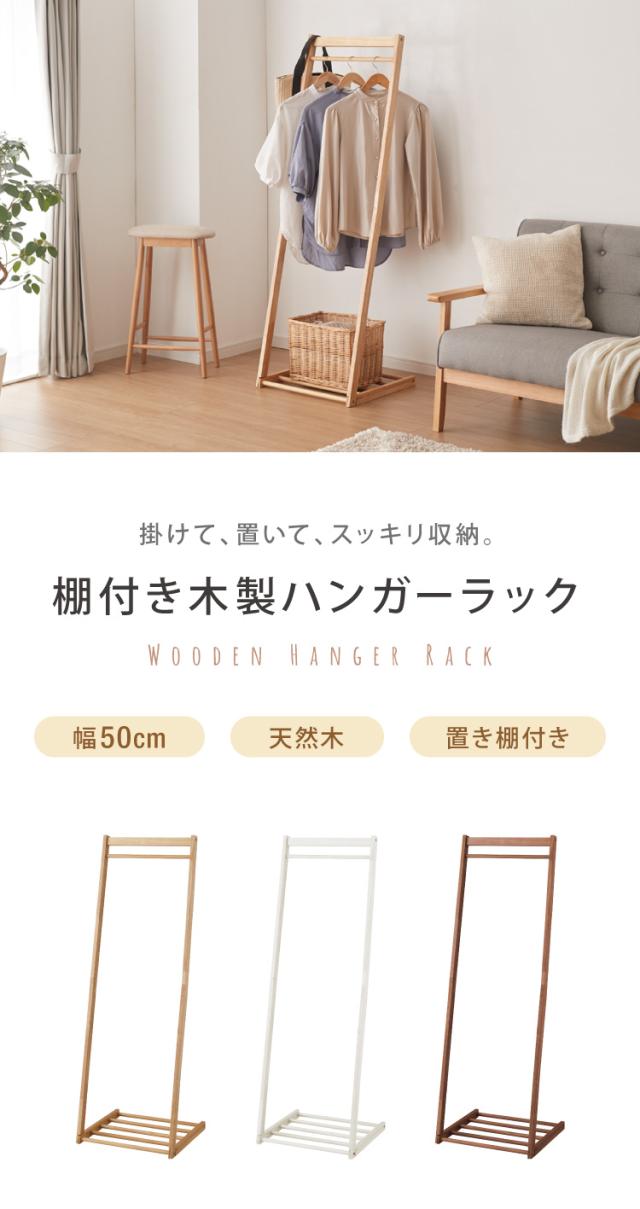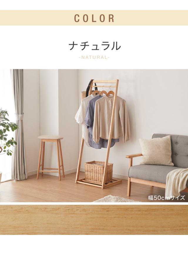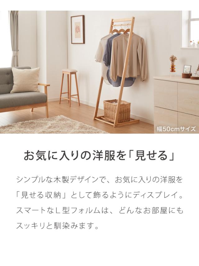 天然木 ハンガーラック 幅50cm 棚付き L型ハンガーラック 省スペース コンパクト スリム ナチュラル ハンガーラック 木製 ポールハンガー コートハンガー 洋服掛け 衣類収納 木製【送料無料】