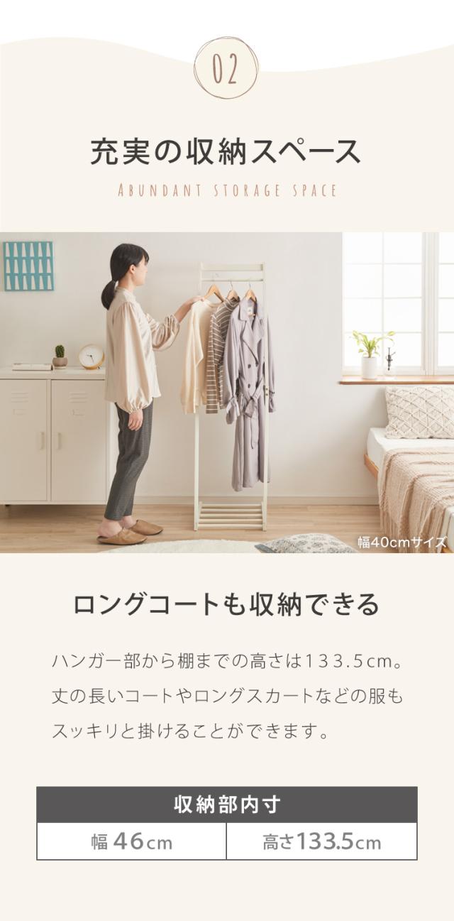 ・棚も付いており、鞄や収納ケースを使って小物も収納できます。