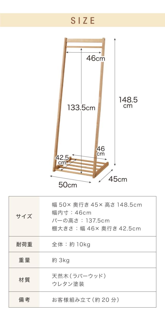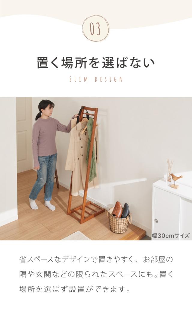 ・どこのお部屋にも馴染むシンプルな木製ハンガーラックです。