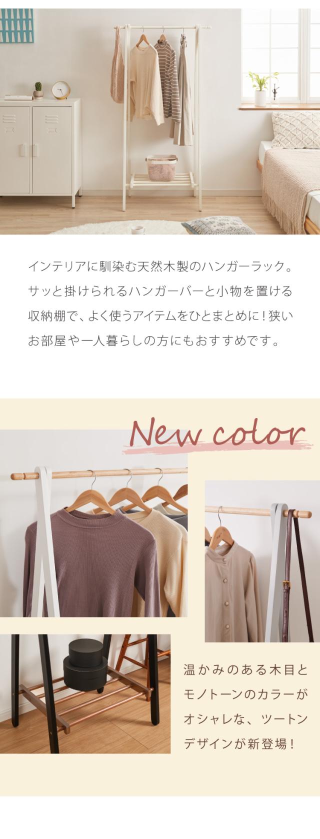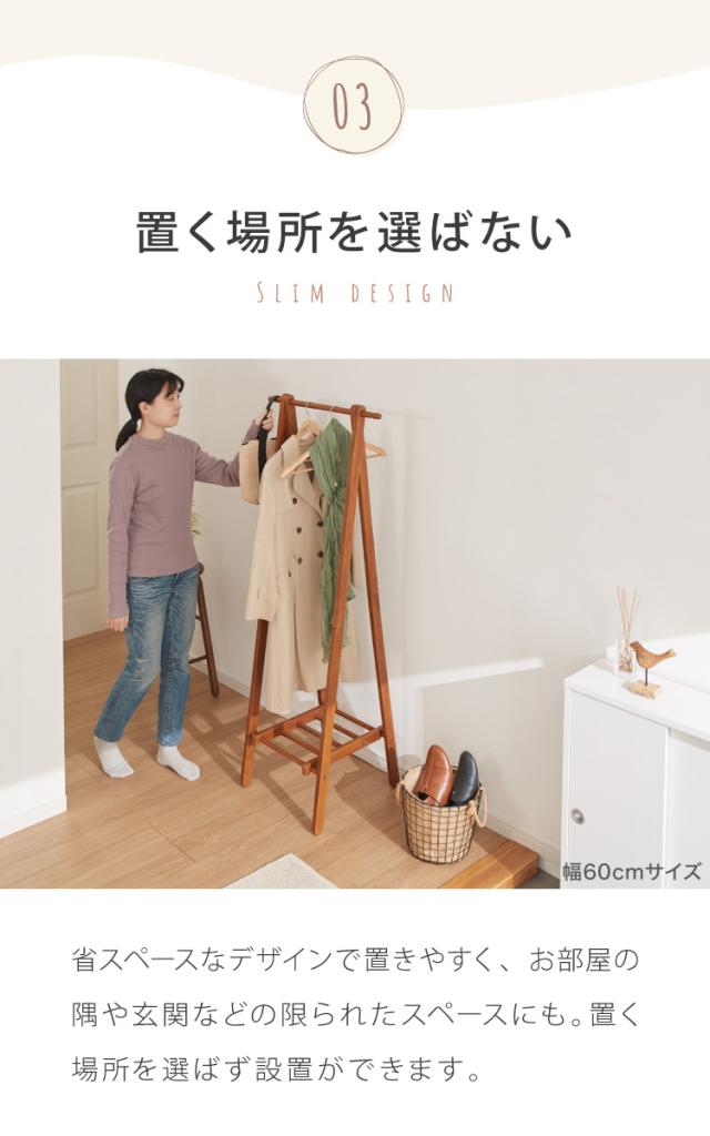 ・どこのお部屋にも馴染むシンプルな木製ハンガーラックです。