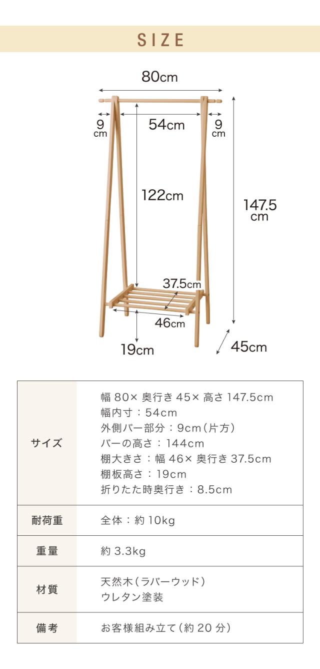 天然木 ハンガーラック 幅80cm 棚付き A型ハンガーラック 折りたたみ 省スペース コンパクト スリム ナチュラル ハンガーラック 木製 ポールハンガー コートハンガー 洋服掛け 衣類収納 木製【送料無料】