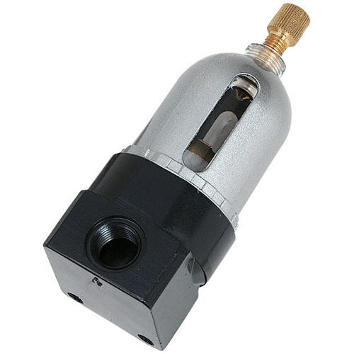 コンプレッサーとエアツールの間に設置して、エアライン中の固形不純物(ゴミ)や水分(ドレン)を取り除きます。