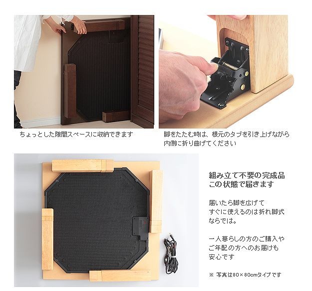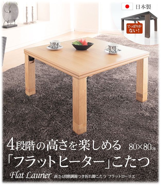 日本製 高さ4段階調整 80×80 天然木 丸型 折れ脚 こたつ こたつテーブル 正方形 四角形 フラットヒーター 木目 国産 天然木 北欧(代引不可)【送料無料】