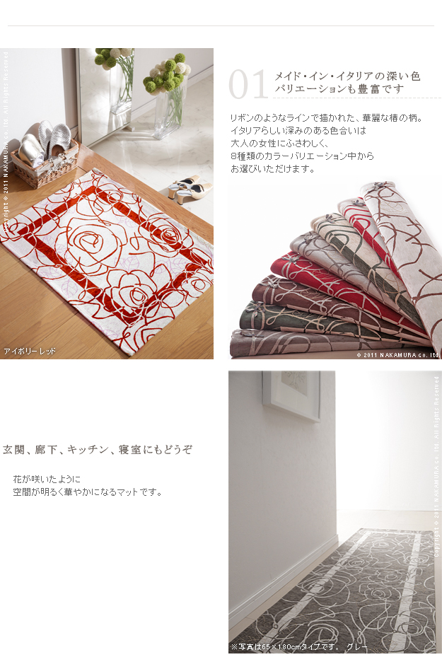 イタリア製 マット コブラン織り Camelia カメリア 65×90 四角形 玄関マット リビングマット ラグマット 洗える 丸洗い 花柄 おしゃれ(代引不可)【送料無料】