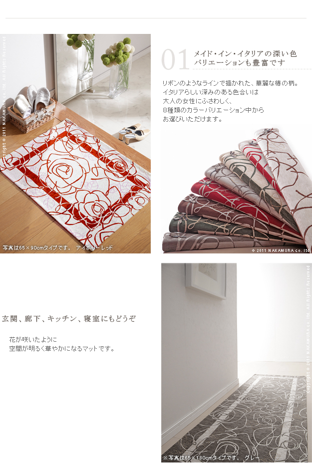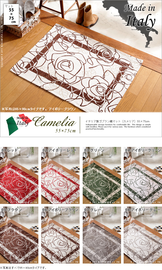 イタリア製 マット コブラン織り Camelia カメリア 55×75 四角形 玄関マット リビングマット ラグマット 洗える 丸洗い 花柄 おしゃれ(代引不可)【送料無料】