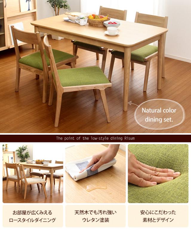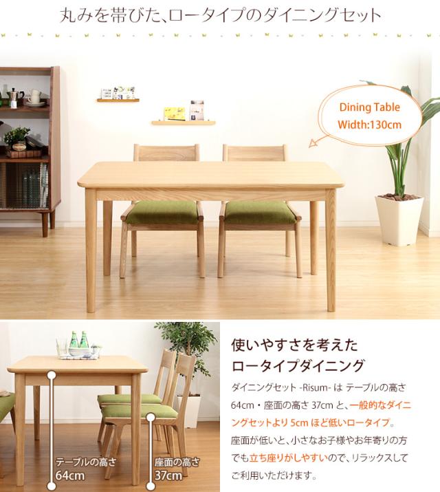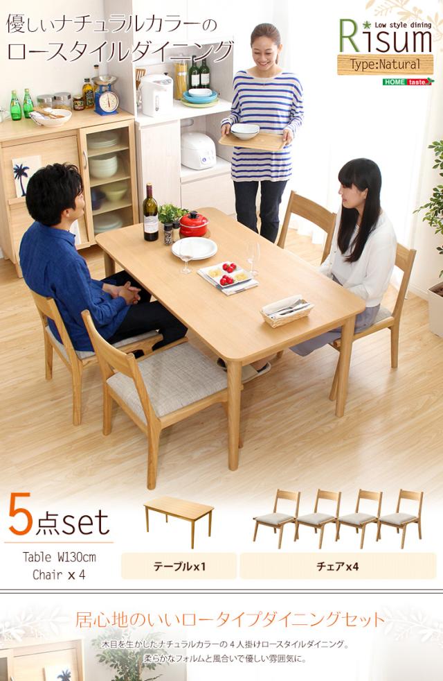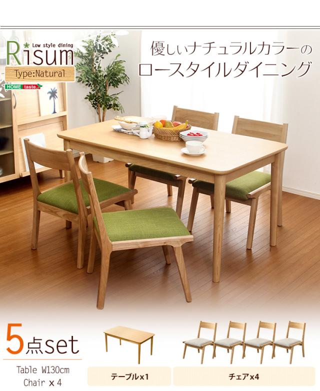 ダイニング5点セット(テーブル+チェア4脚)ナチュラルロータイプ 木製アッシュ材|Risum-リスム-