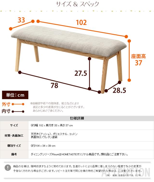 ダイニングチェア単品(ベンチ) ナチュラルロータイプ 木製アッシュ材|Risum-リスム-