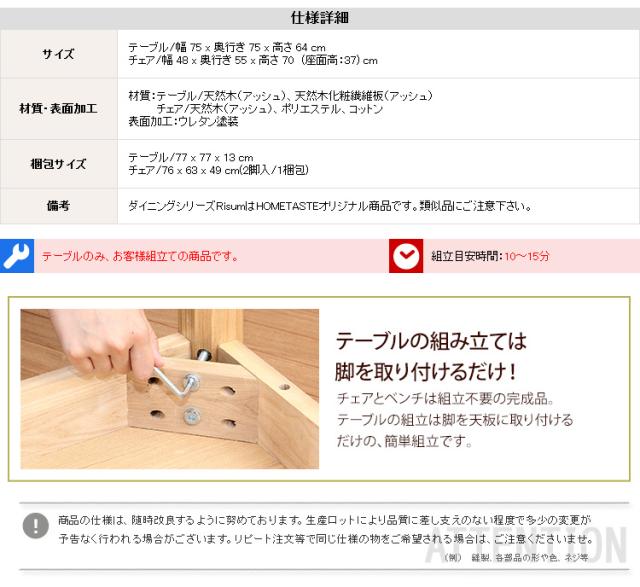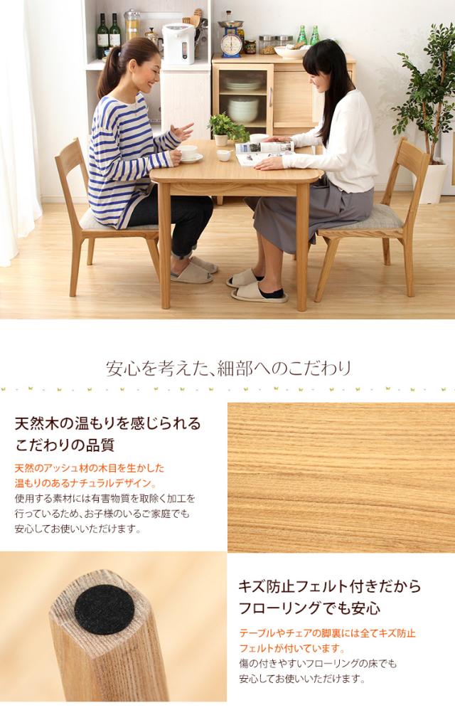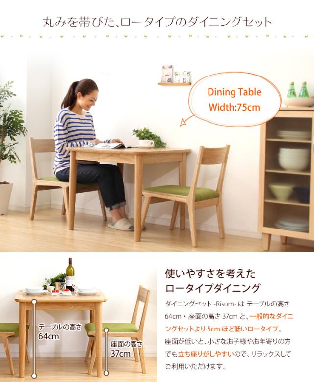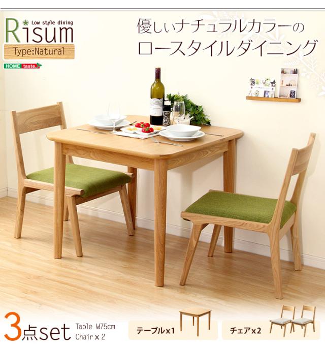 ダイニング3点セット(テーブル+チェア2脚)ナチュラルロータイプ 木製アッシュ材|Risum-リスム-