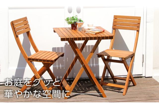 ガーデンセット 完成品 折り畳みテーブル 折りたたみテーブル ガーデンチェア ガーデンファニチャー(代引不可)【送料無料】
