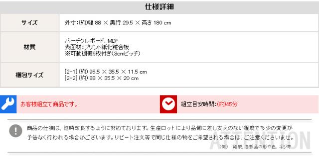 材質:パーチクルボード、MDF、プリント紙化粧合板