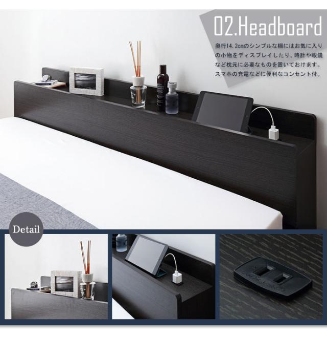 ベッド シングル マットレス付き 棚 コンセント付 国産・ハイブリッド・ポケットコイル Berge【ベルジュ】(代引不可)【送料無料】