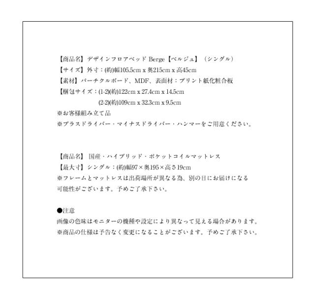 ※フレームとマットレスは出荷場所が異なる為、別の日にお届けになる可能性がございます。予めご了承下さい。