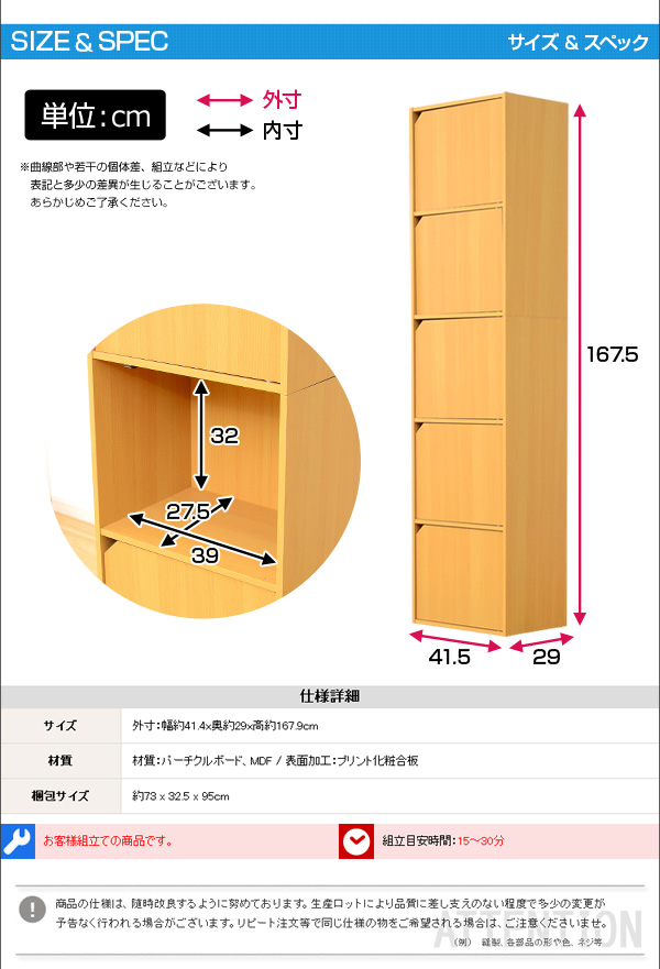 外寸:(約)幅41.4x奥行き29x高さ167.9cm