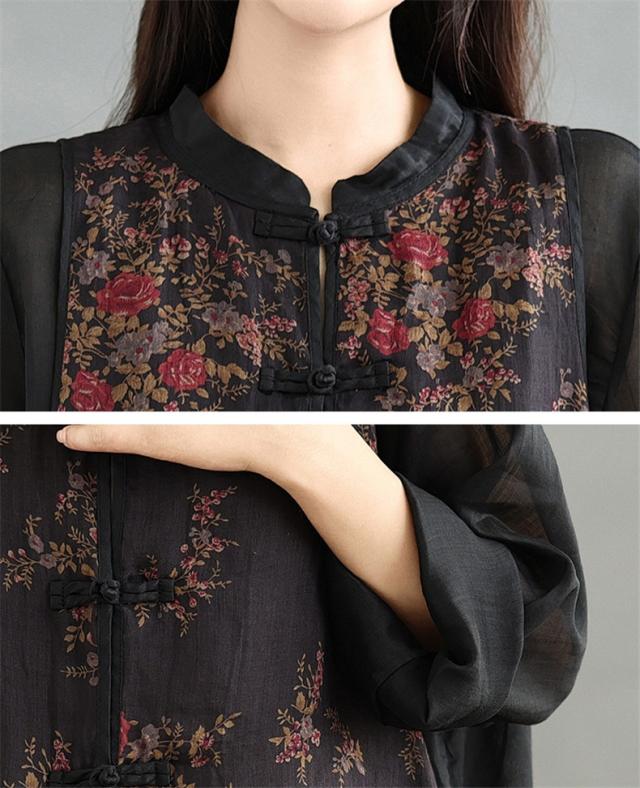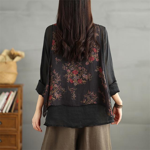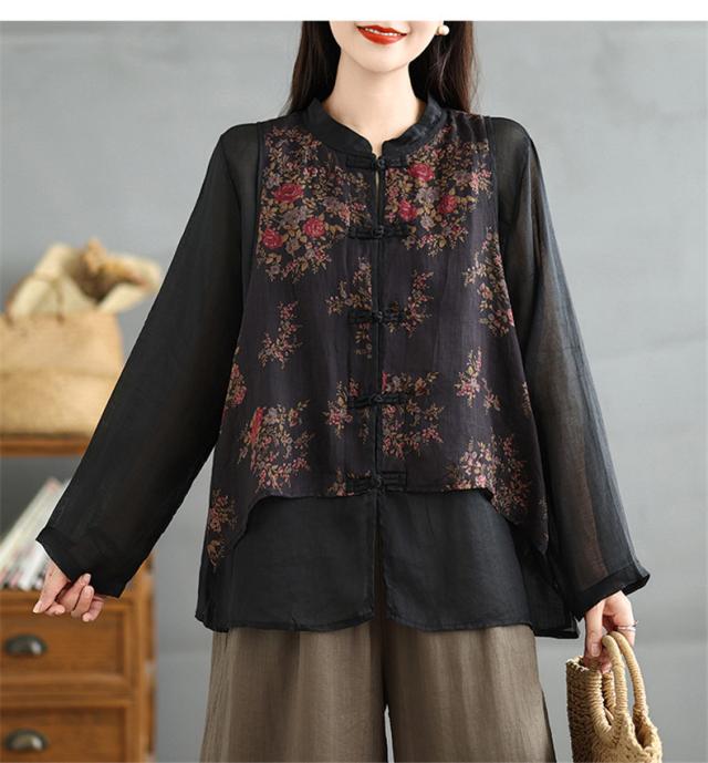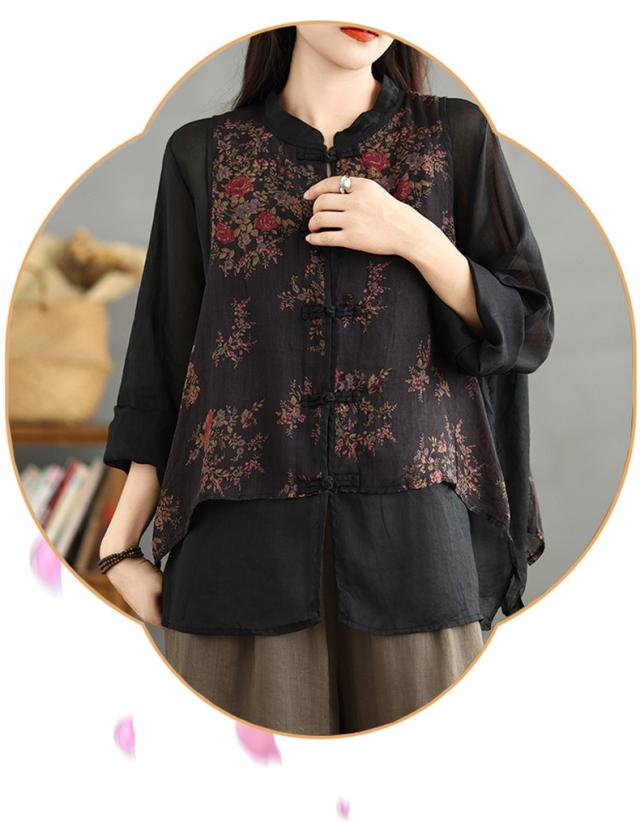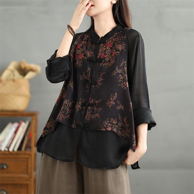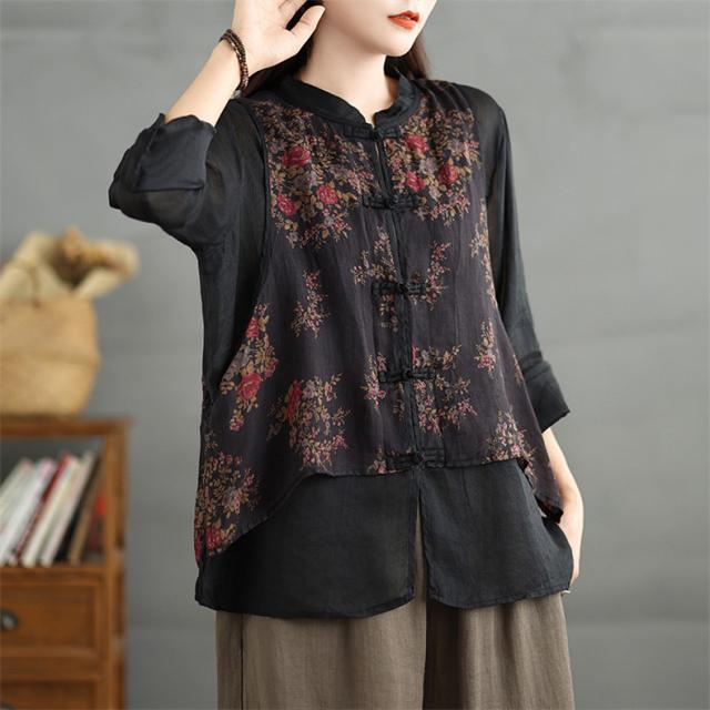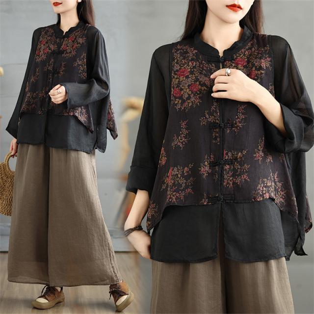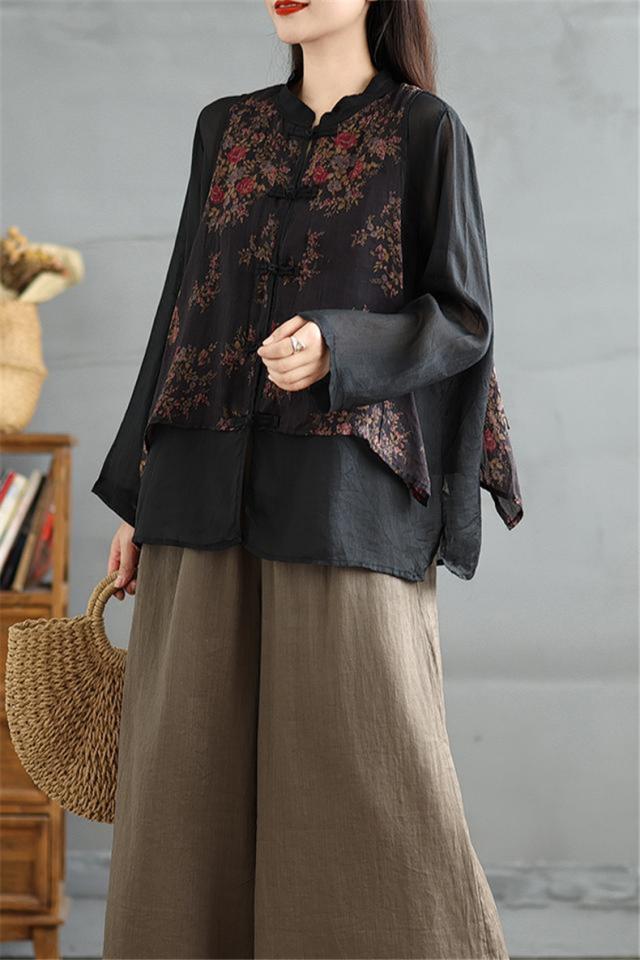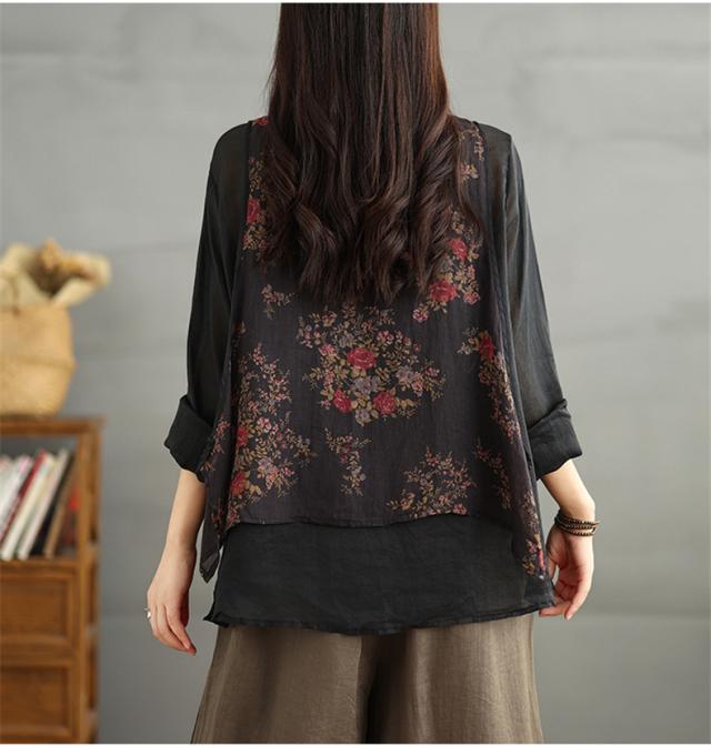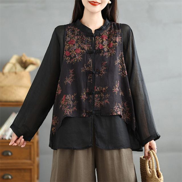トップス シャツ ブラウス レディース 花柄 羽織り 長袖 切り替え 自然に体型カバー 秋を華やかに彩ってくれる 着映えするブラウス 魅力的で今っぽい