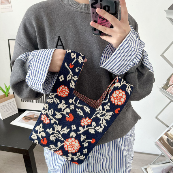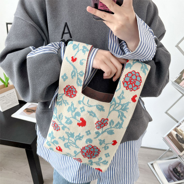 ニット バッグ マルシェバッグ 縦型 鞄 ハンドバッグ 韓国
