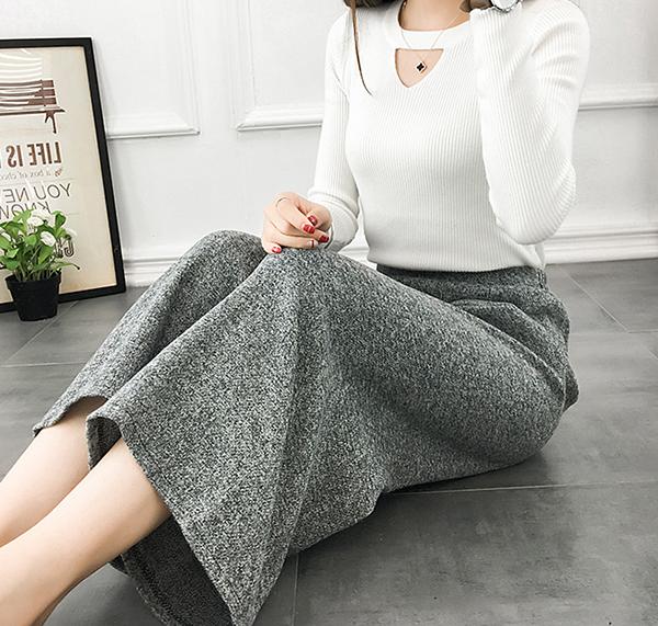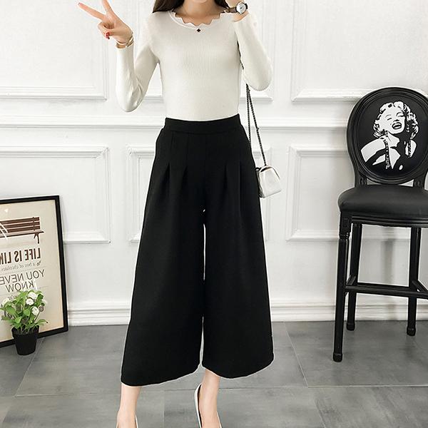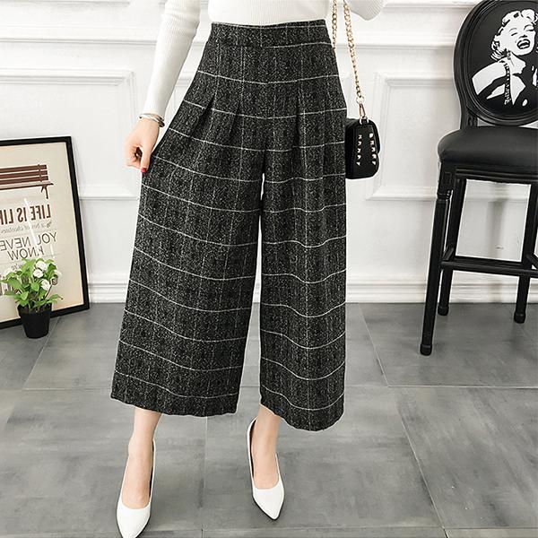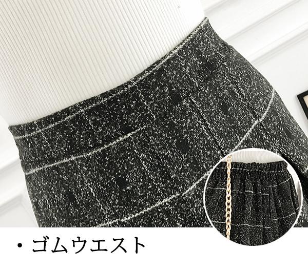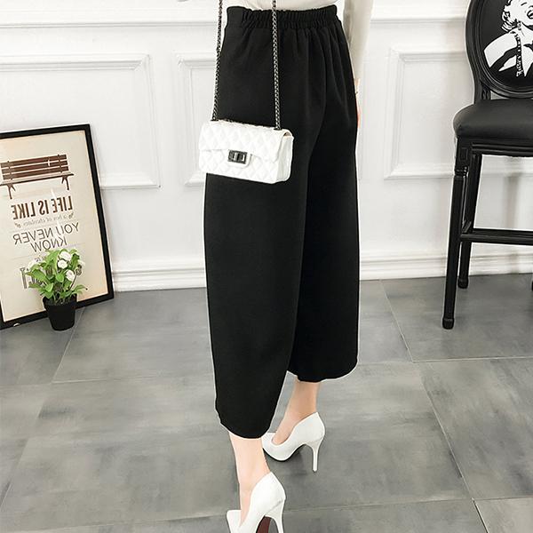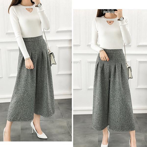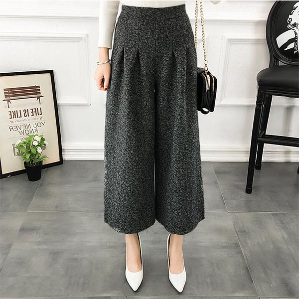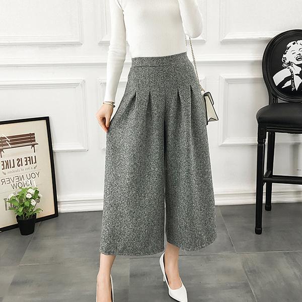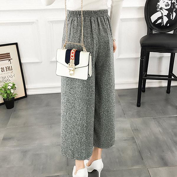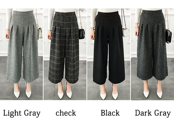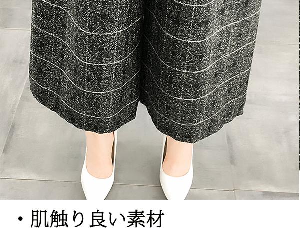 ウール混ゴムウエストワイドパンツ 七分丈 体型カバー 送料無料