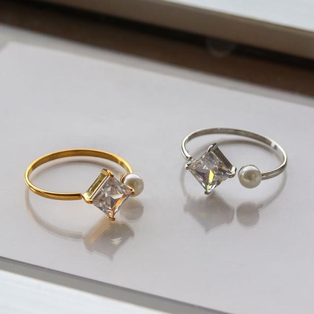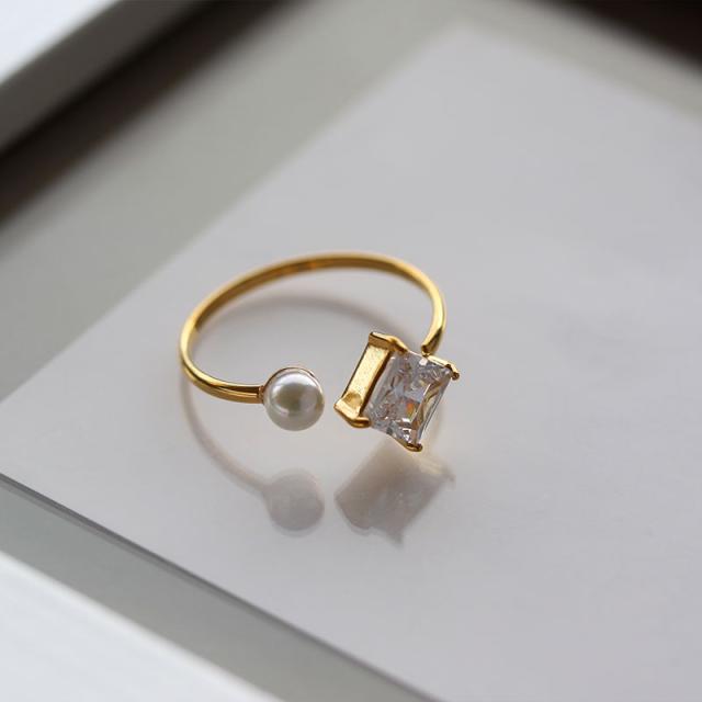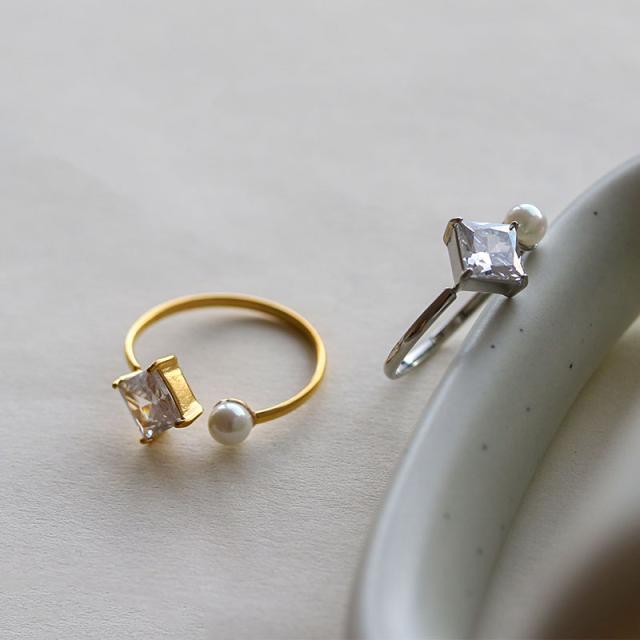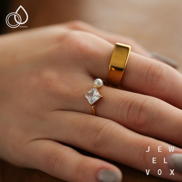 指輪 リング レディース ステンレス製 サージカルステンレス 金属アレルギー オープンリング フォークリング キュービックジルコニア パール つけっぱなし ゴールド シルバー 12号 フリーサイズ 女性 ギフト プレゼント