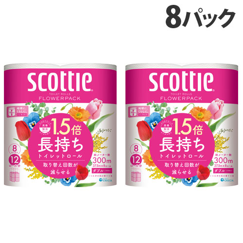スコッティ フラワーパック 1.5倍長持ち ダブル 8ロール 8パック クレシア『送料無料(一部地域除く)』