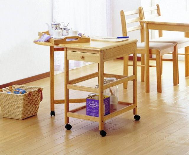 木製テーブル付ワゴン KW-415 収納 キッチン収納 キッチンワゴン キャスター付(代引不可)【送料無料】