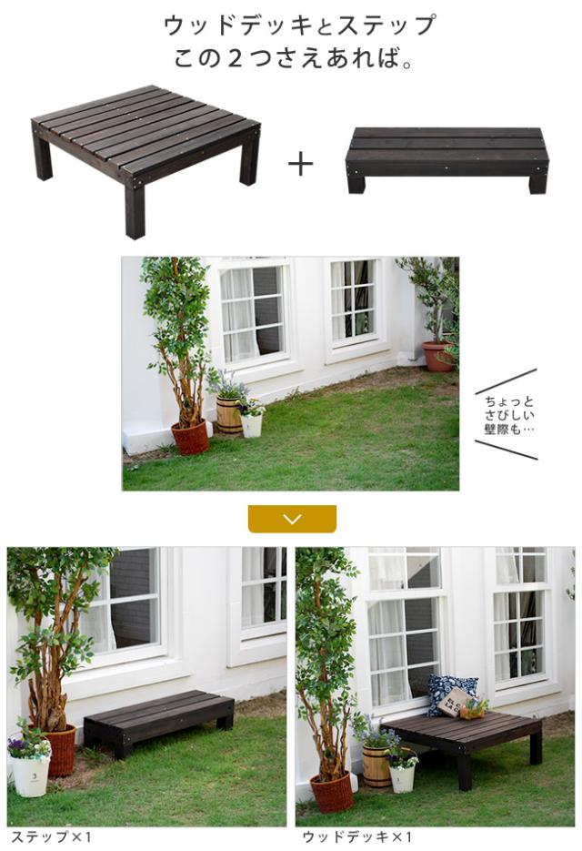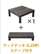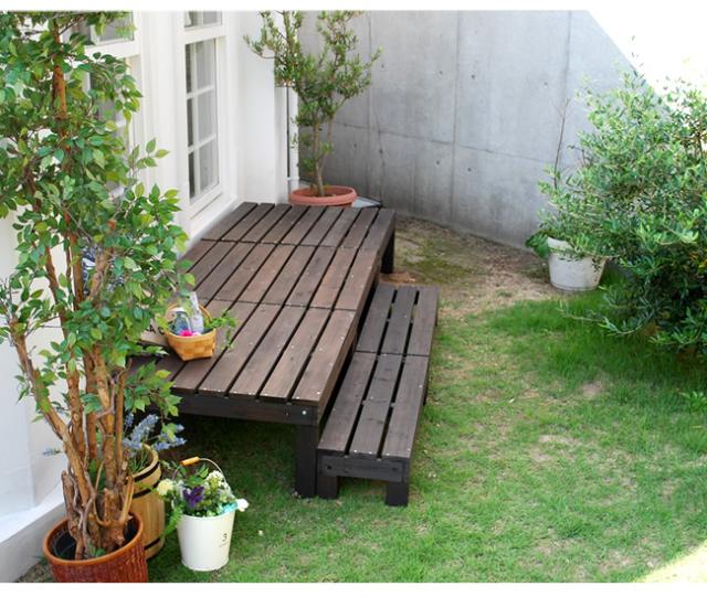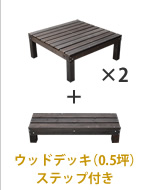 90×90cmのウッドデッキとステップの組み合わせで、デザインは無限大!