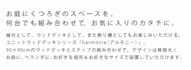 ユニットウッドデッキ harmonie(アルモニー)90×90 ウッドデッキ 簡単 縁側 本格的 DIY 木製 天然木 庭 ベランダ(代引不可)【送料無料】