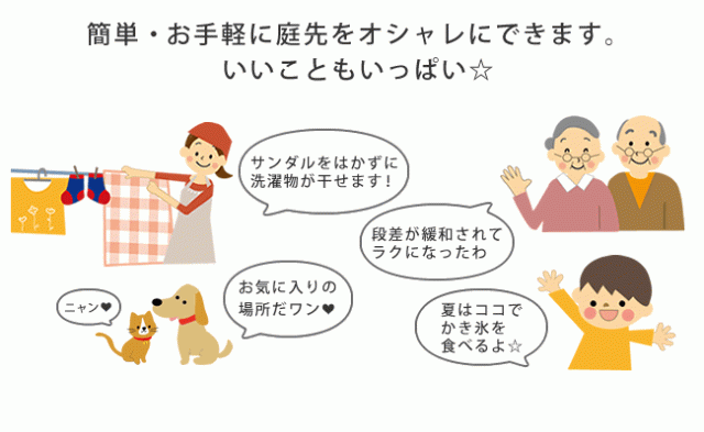 縁台として、ウッドデッキとして、また飾り棚としてもお楽しみいただける、