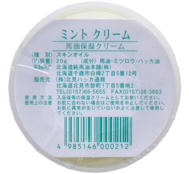 北見ハッカ ミントクリーム 馬油保湿クリーム 20g