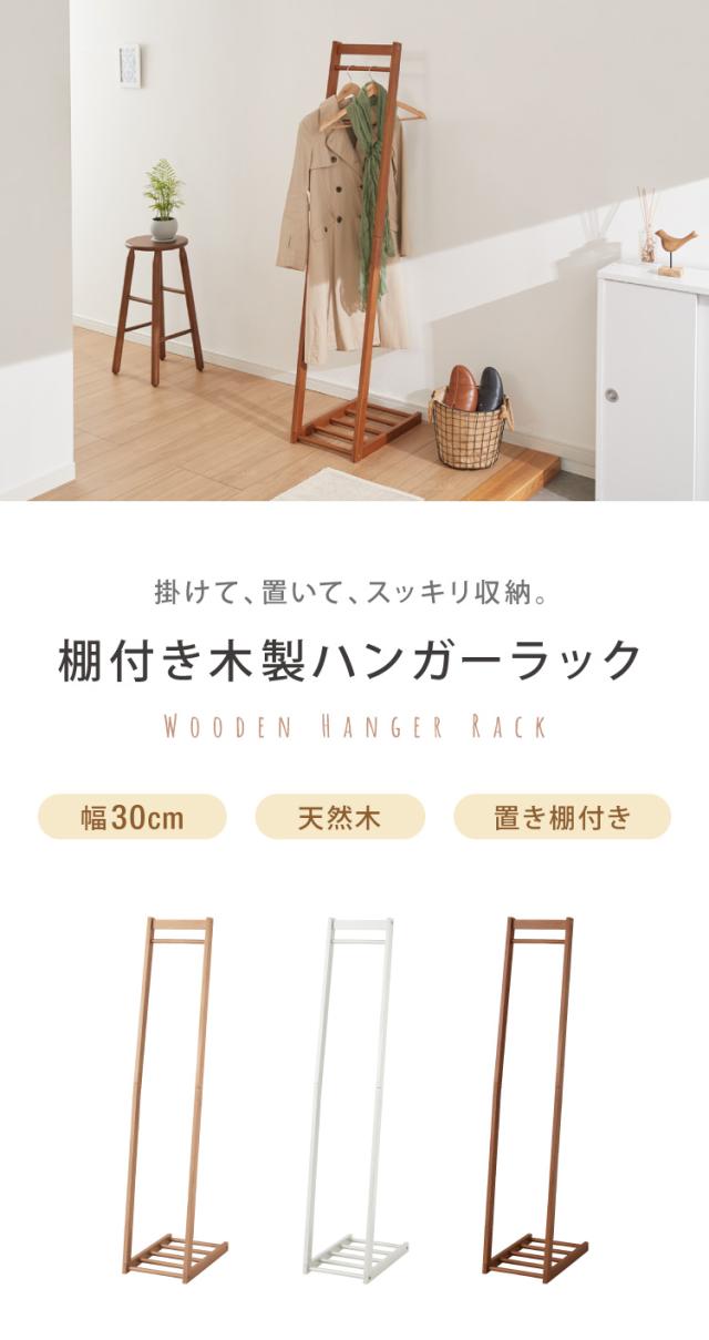 天然木 ハンガーラック 幅30cm 棚付き L型ハンガーラック 省スペース コンパクト スリム ナチュラル ハンガーラック 木製 ポールハンガー コートハンガー 洋服掛け 衣類収納 木製【送料無料】