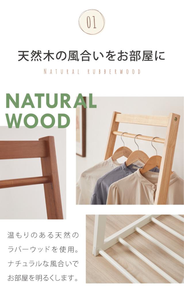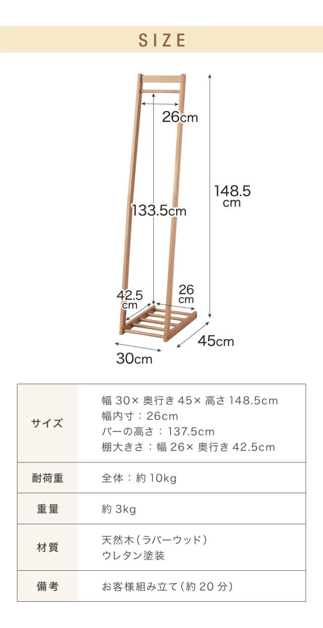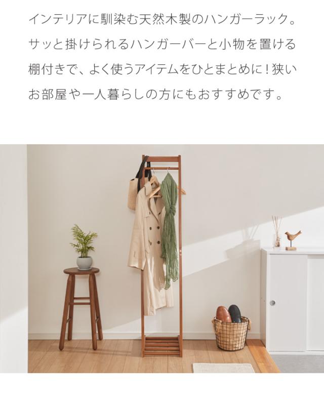 ・どこのお部屋にも馴染むシンプルな木製ハンガーラックです。