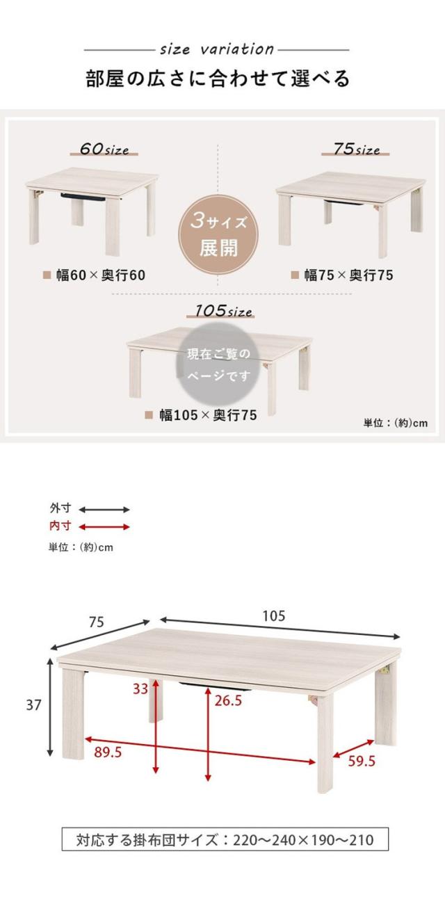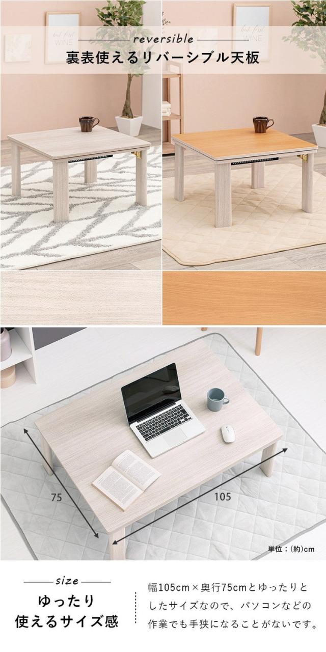 こたつテーブル 75×105 折りたたみ リバーシブル天板 折脚 かわいい おしゃれ カジュアルこたつ 萩原 KOT-7350-105 コタツ 炬燵 暖房 300W センターテーブル(代引不可)【送料無料】