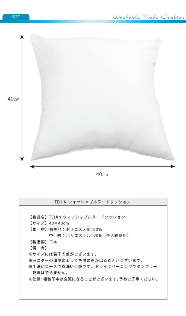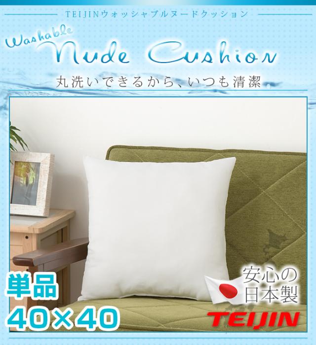 クッション 40x40cm テイジン製中綿使用 帝人綿 帝人 テイジン TEIJIN ヌードクッション 国産 日本製 クッション中身 クッションBODY クッション中材 中身 洗えるクッション 洗える ウォッシャブル 清潔 単品