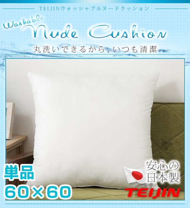 日本製 ヌードクッション 60x60cm 洗える テイジン中綿使用 ふかふか 肉厚 たっぷり 帝人綿 テイジン TEIJIN 中身 中材 本体 国産 洗えるクッション ウォッシャブル セット クッションカバー用 【送料無料】