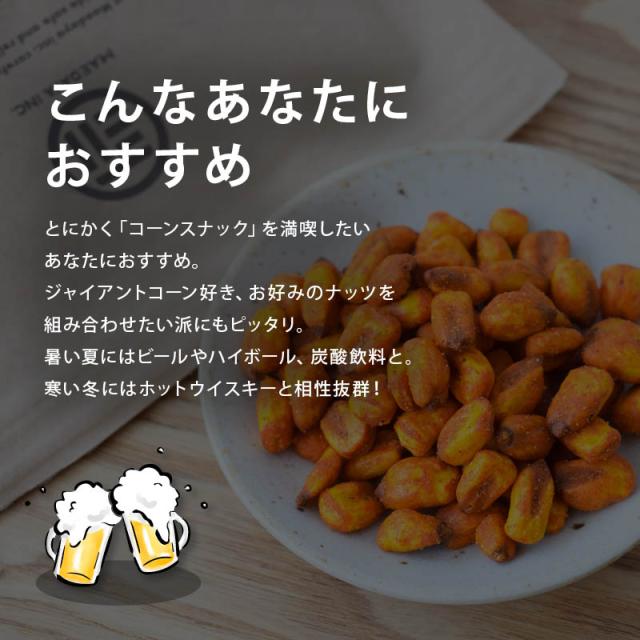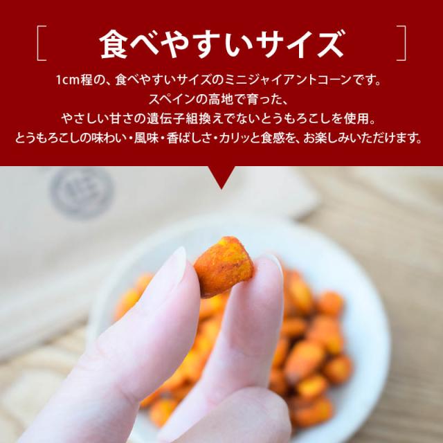 チリパウダーのピリ辛風味と、とうもろこしの自然な甘さが絶妙なバランスで、