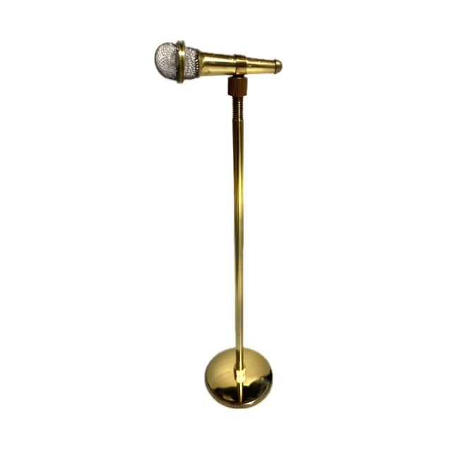 ミニチュア スタンド付き マイク マイクスタンド インテリア ケース スタンド付き 20cm ドール 模型 贈り物 楽器 モチーフ 手のひらサイズ 小さな 置物 リアル ボーカル 金色 ゴールド クラシック かわいい お洒落 可愛い おしゃれ 音楽好き クラシック プレゼント ギフト
